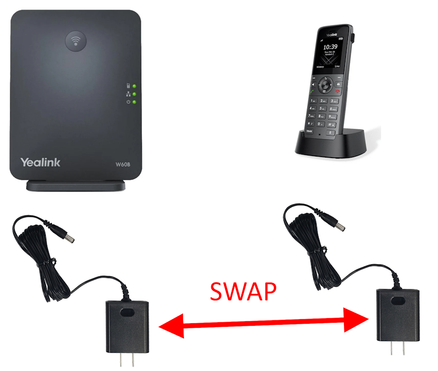 - Please follow the steps above on swapping power supplies between the handset and charging cradle