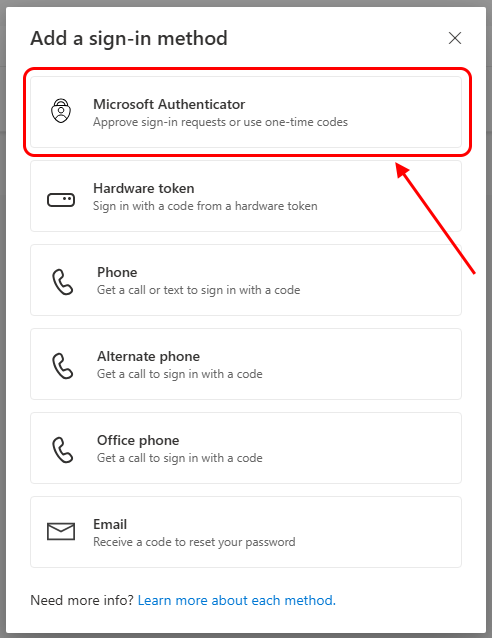 4. Click "Microsoft Authenticator"