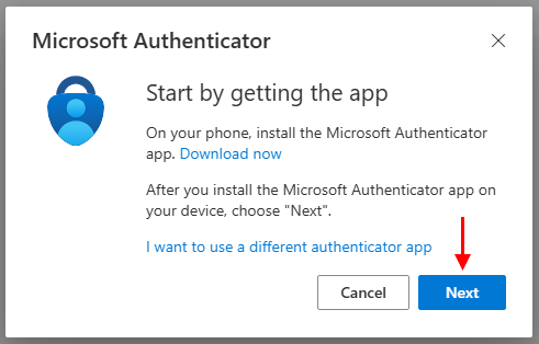 5. Download the Microsoft Authenticator app on your phone or iPad and click "Next". (Corporate GOLFTEC Coaches already have the Microsoft Authenticator App pre-installed on their iPads)