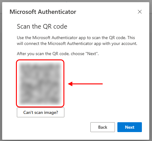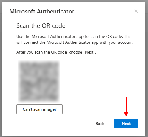 8. Open the Microsoft Authenticator app and scan the QR code with your phone or iPad's camera.